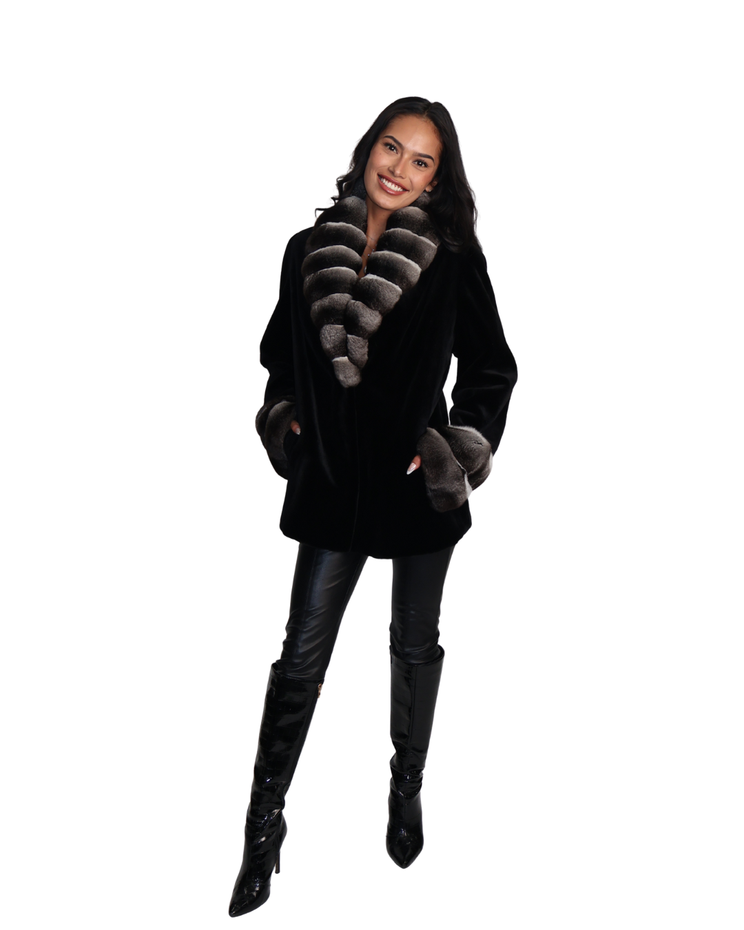 Black Sheared Mink Jacket w/Chinchilla Collar & Cuffs