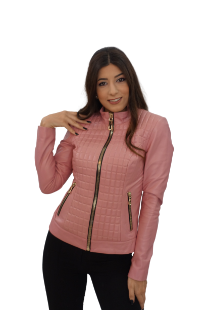 Pink Lambskin Leather Bomber Jacket (S/M)