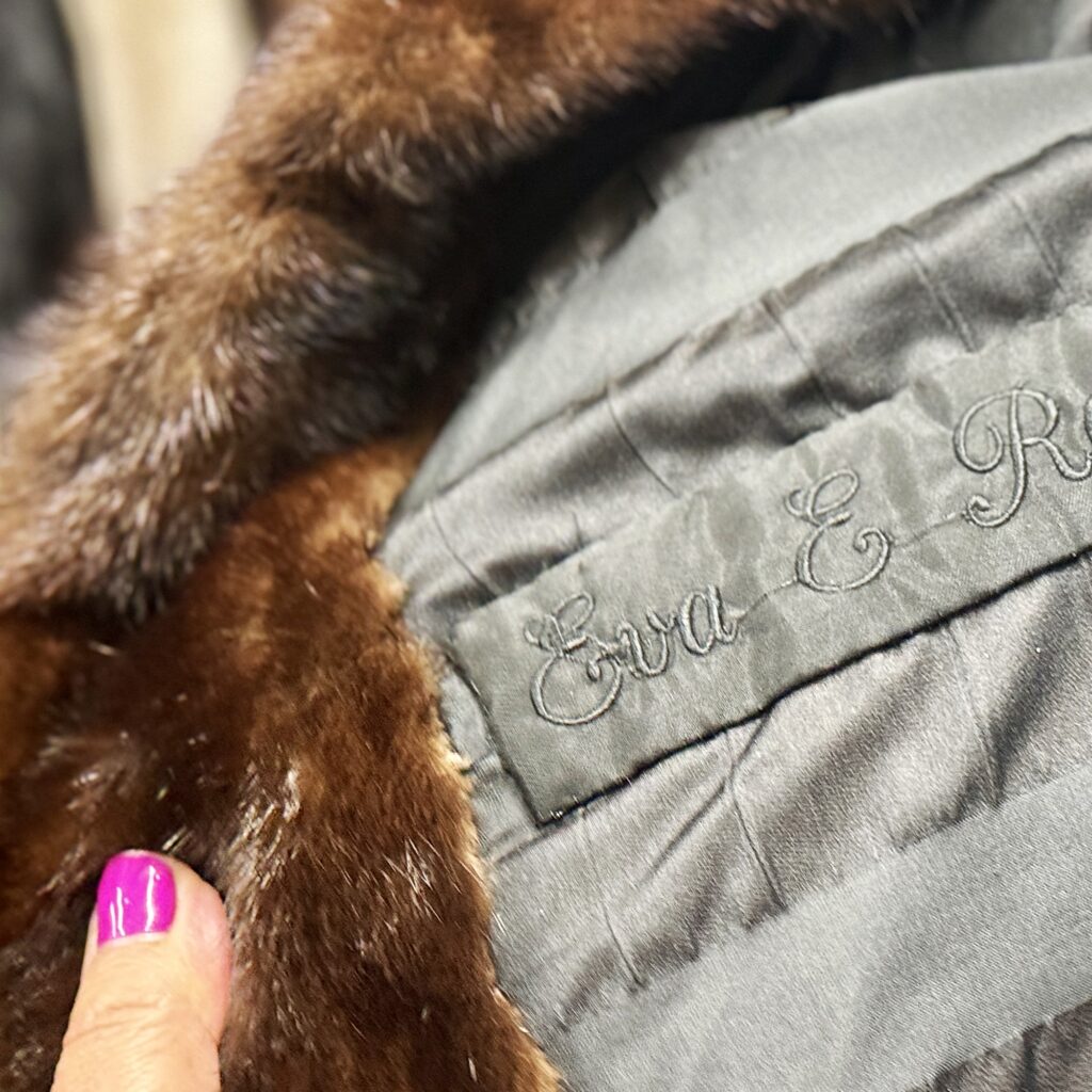 Woody’s Furs offers a complimentary $100 monogram on one coat or jacket for orders over $1,000, allowing customers to personalize with full names or initials in their preferred color